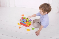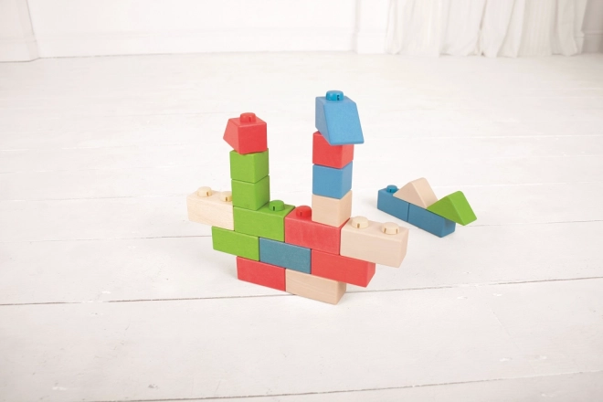 Grâce aux connecteurs en plastique, les blocs s’assemblent facilement, stimulant la créativité et la motricité des enfants.