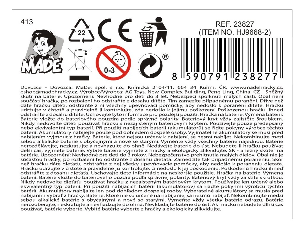 Découvrez le plaisir hivernal avec cette motoneige détaillée en plastique résistant. Grâce à ses dimensions compactes de 12 × 5 × 4 cm, elle tient parfaitement en main ou sur une étagère, et avec les piles AG13 incluses, elle est prête à partir à l’action dès l’ouverture. L’élégant emballage boîte vitrine en fait un joli cadeau.
