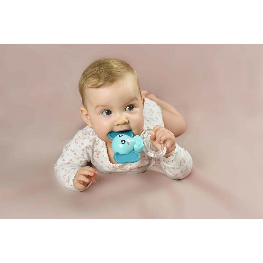 Le hochet de dentition en silicone Akuku éléphant combine un massage doux des gencives avec un agréable son de hochet, motivant l’enfant à jouer et développant sa perception auditive. Sa forme ergonomique et sa structure légère facilitent la prise en main et soutiennent le développement de la motricité fine.