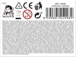 Le jouet est fabriqué en plastique de qualité et, grâce à sa commande simple, il convient dès 3 ans. L’alimentation est assurée par 2 piles AAA (non incluses), afin que les enfants puissent profiter d’un jeu créatif partout.