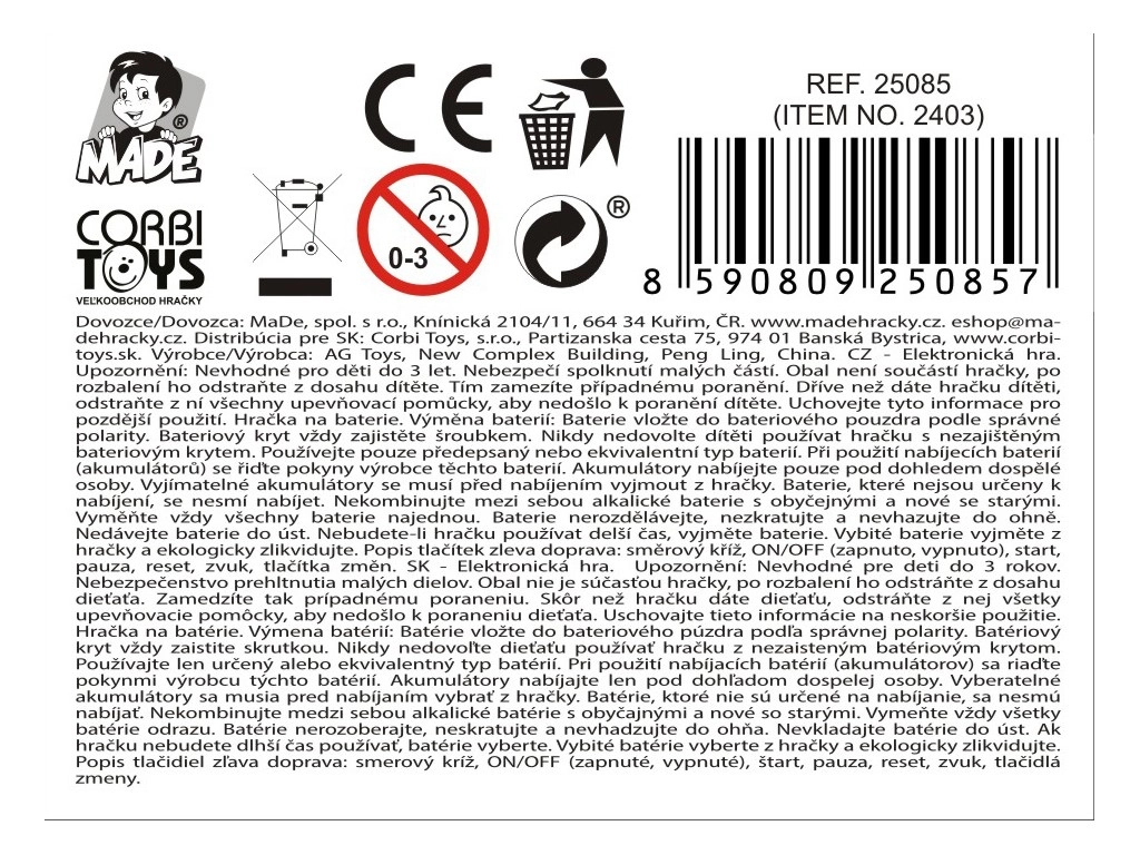 Le jeu est livré dans un display box et nécessite 2 × piles AA (non incluses) pour fonctionner. L’entretien est ainsi facile et le remplacement de l’alimentation rapide. Idéal pour le développement de la coordination, la patience et un amusement sans installation complexe.