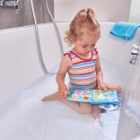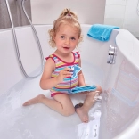 Sa structure légère flotte sur l’eau et est sûre pour jouer dans la baignoire ou la piscine. Les enfants feuillettent facilement et découvrent couleurs et formes.