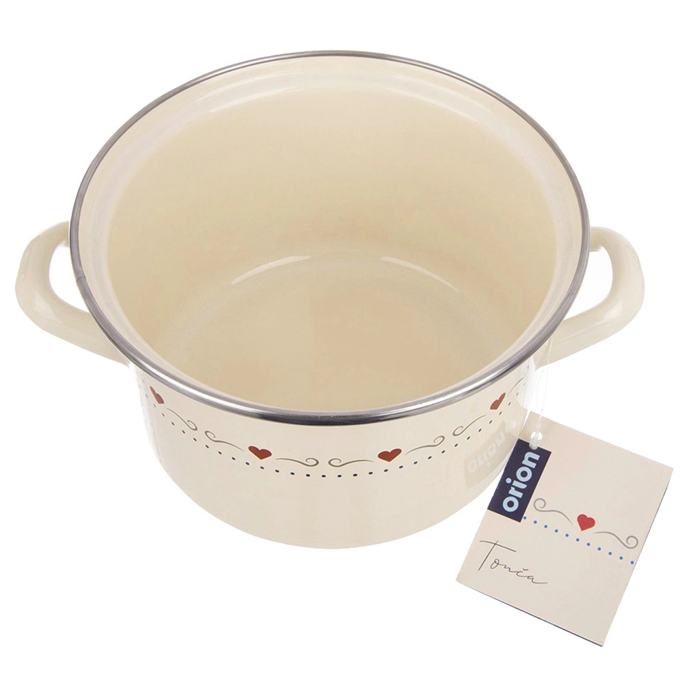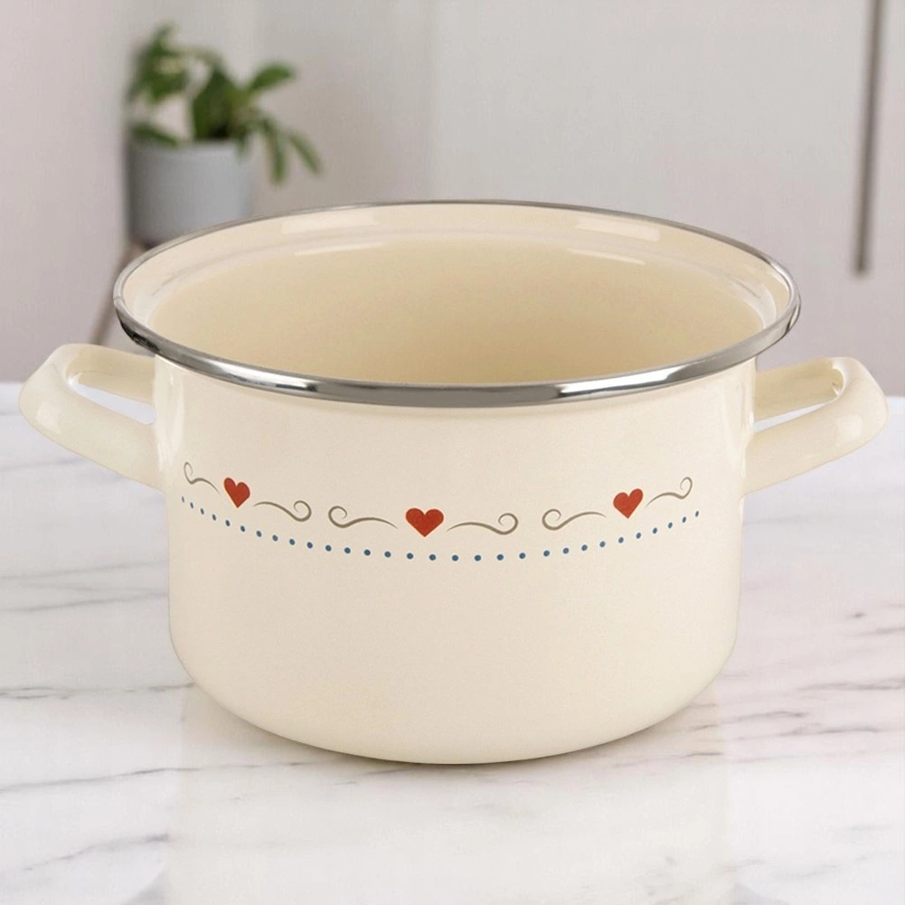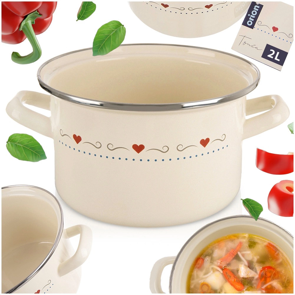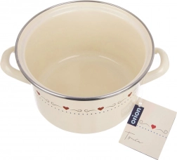 Découvrez un aide‑cuisine pratique pour la cuisson quotidienne. La casserole émaillée TONCA au style rétro est idéale pour cuire et mijoter des soupes, sauces et plats principaux. Son joli design crème orné de petits cœurs embellira votre cuisine et, grâce à ses poignées solides, garantit une manipulation sûre.