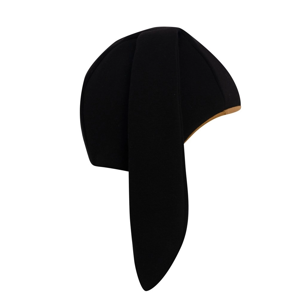 Adorable bonnet pour enfant avec oreilles NEW BABY Favorite en noir, confectionné en coton doux et extensible avec une touche d’élasthanne pour un ajustement parfait. Il possède de longues oreilles, des cordons à nouer pour un maintien sécurisé et est entièrement doublé de coton pour plus de confort. Idéal au printemps et en automne.
