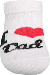Offrez à votre bébé douceur et confort. Ces chaussettes blanches avec l’inscription mignonne « I ❤️ Mum & Dad » tiennent chaud, s’ajustent bien et, grâce au bord élastique, restent en place sans compression désagréable. La matière de qualité ne dégorge pas et garde sa forme dans le temps.