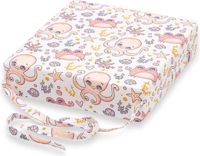 Pratique rehausseur pour enfant New Baby Basic avec motif pieuvre, garantissant confort et sécurité à table. Grâce à la mousse de polyuréthane de 8 cm, l’enfant atteint mieux la table, tandis que la housse en coton avec fermeture éclair permet un entretien facile et une assise agréable.