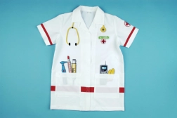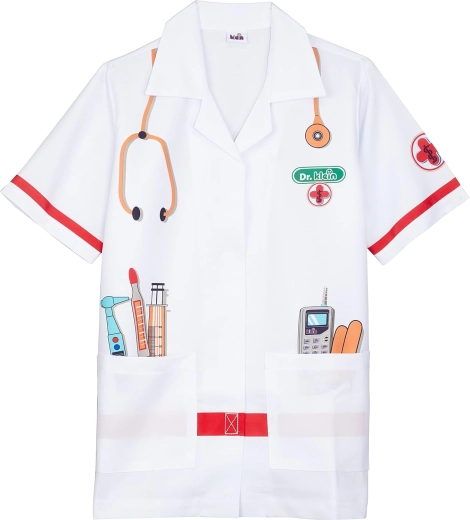 La blouse médicale pour enfant KLEIN stimule l’imagination et développe les compétences sociales lors des jeux de docteur. Sa coupe légère et confortable avec col, manches courtes et fermeture velcro permet de l’enfiler et de la retirer facilement. Les motifs colorés d’outils apportent authenticité et amusement au jeu.