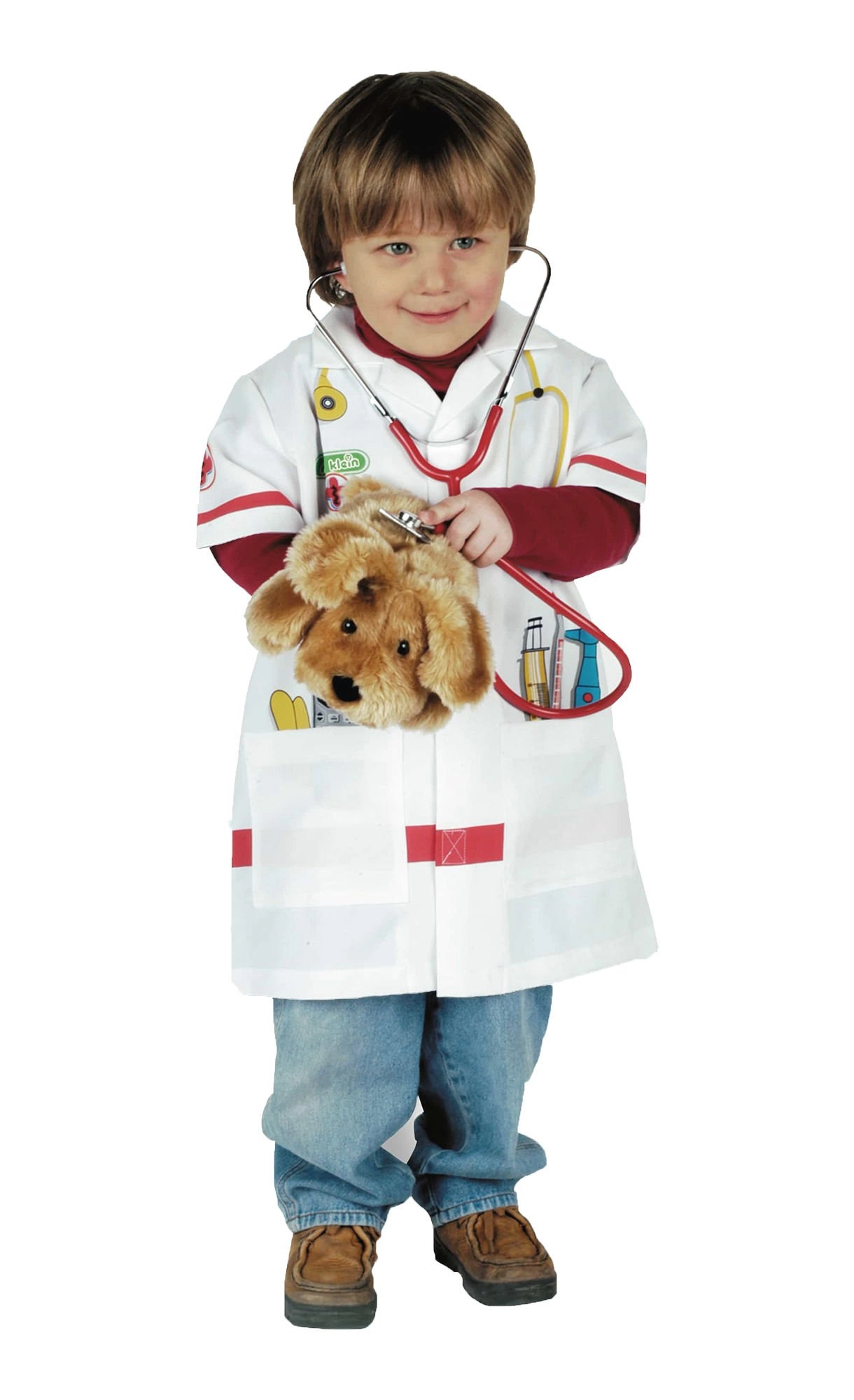 Un design universel convient aux filles comme aux garçons et, grâce aux dimensions bien pensées, s’ajuste parfaitement aux enfants de 3 à 5 ans. Deux grandes poches peuvent contenir de petits accessoires de jeu de docteur pour tout avoir sous la main.