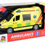 Une ambulance jouet réaliste à l’échelle 1:16 offre aux enfants une expérience authentique d’intervention de secours. Elle fonctionne à inertie, dispose d’un gyrophare fonctionnel à lumières bleues, de messages vocaux tchèques de l’équipage et du dispatching, de portes ouvrantes et est livrée avec piles.