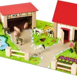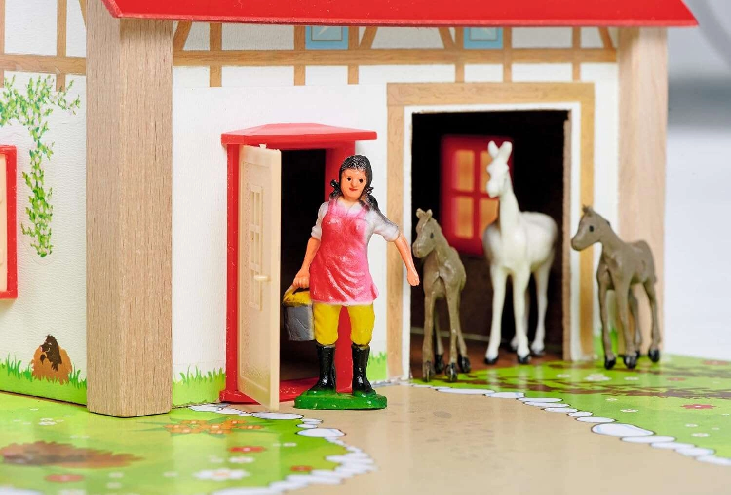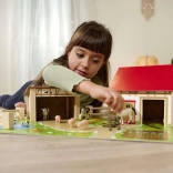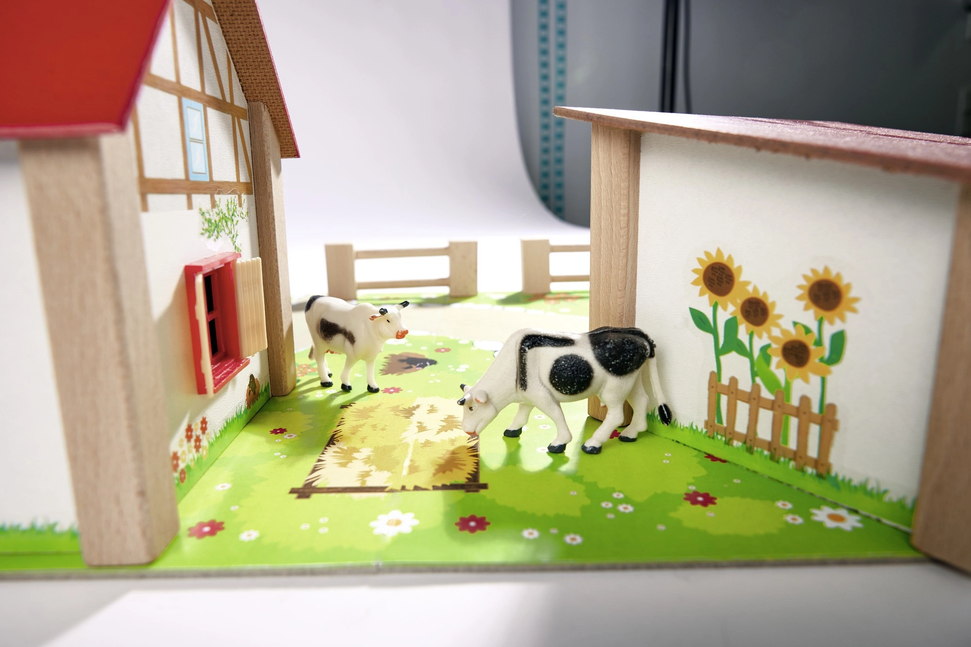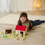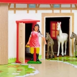 La grande grange avec étable, passages ouvrants et enclos crée un environnement authentique. Les enfants peuvent nourrir les animaux, les conduire aux pâturages et organiser la vie à la ferme.