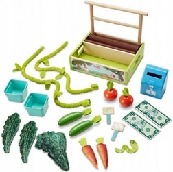 Ce set coloré offre tout pour un jeu réaliste et amusant : une caisse de plantation avec « terre » en tissu, une vigne en corde, des carottes, des pommes, un poivron, du chou frisé, deux paniers et une caisse enregistreuse avec de l’argent. Les enfants peuvent « cultiver » la récolte, la cueillir puis la vendre sur leur propre stand – le tout de manière sûre et stimulante.