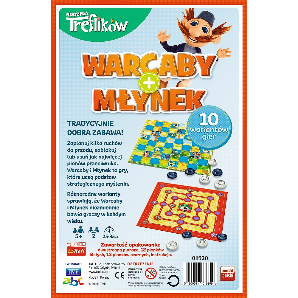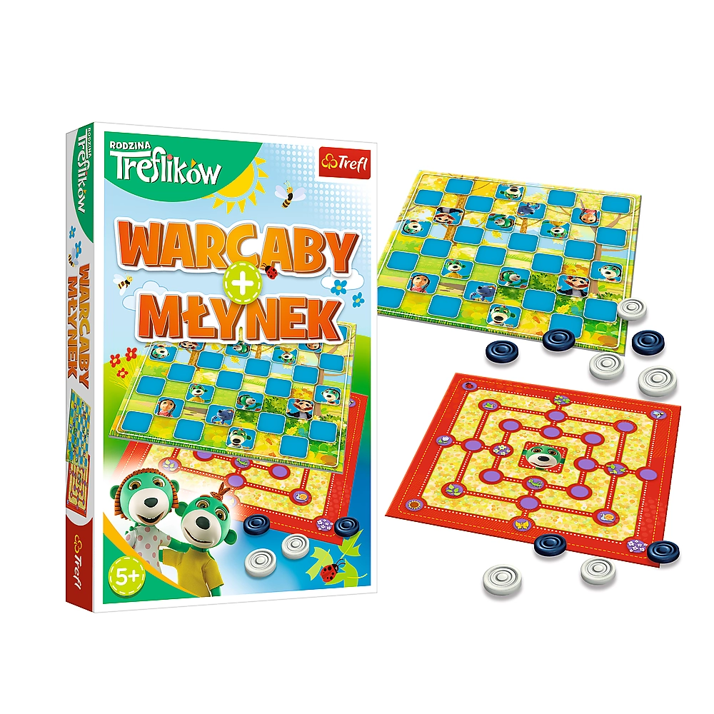 Découvrez un ensemble ludique de jeux de plateau issu du monde féerique de la Famille Treflik de la marque TREFL. Double dose de classiques – dames et moulin – sur un plateau de jeu recto‑verso. Idéal pour 2 joueurs, parfait pour développer logique et stratégie, avec des parties rapides de 5 à 20 minutes. Fabriqué en Pologne et parfait comme cadeau pour les enfants à partir de 5 ans.