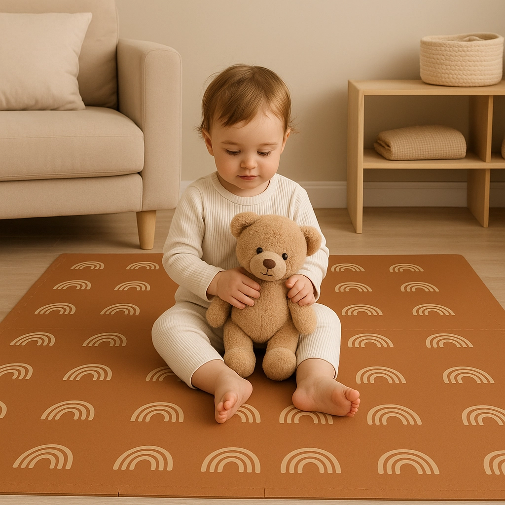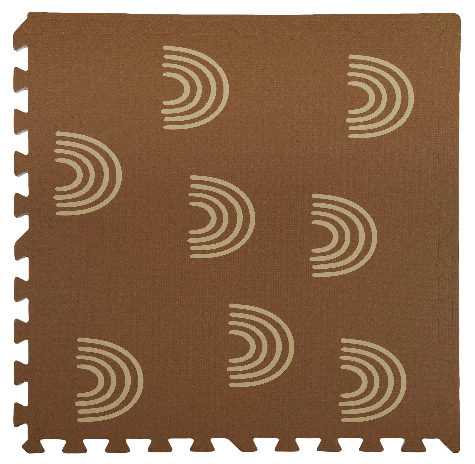 Créez pour les enfants un coin douillet et sûr pour jouer, ramper et faire leurs premiers pas. Le tapis en mousse EVA souple est hygiénique, facile à nettoyer (un simple coup de chiffon humide suffit) et, grâce à son épaisseur de 1 cm, isole très bien du sol froid. Sa teinte brune discrète avec arcs crème s’adapte à tout intérieur.