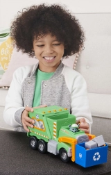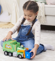 Partez en mission pour une ville plus propre avec Rocky et son camion de recyclage vert. Les enfants peuvent soulever le panier bleu, charger les « déchets » et apprendre le tri. Les détails authentiques de la série Paw Patrol stimulent l’imagination et le jeu narratif.