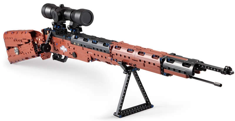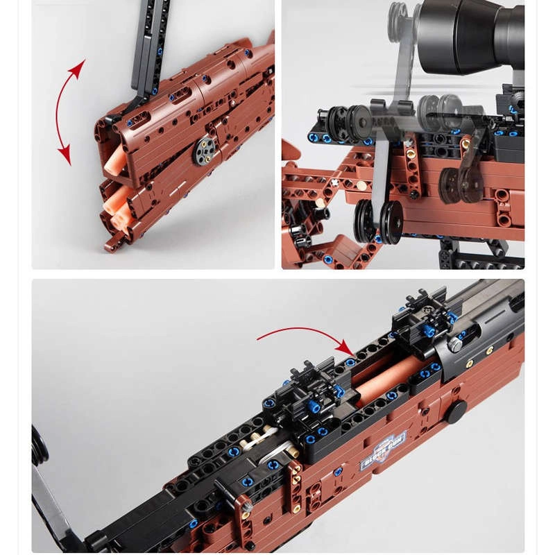 Le mécanisme permet de tirer les munitions fournies, tandis que les pièces résistantes maintiennent solidement le modèle assemblé.