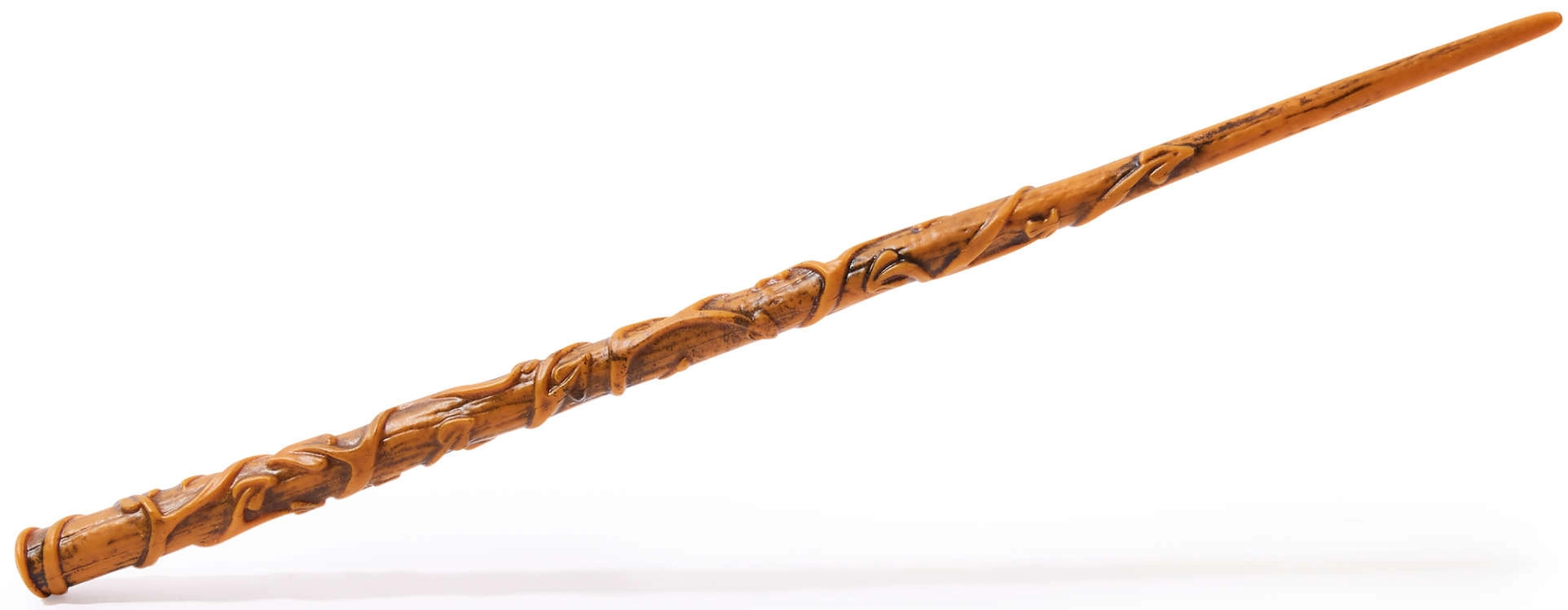 Des motifs spiralés et végétaux sur toute la longueur de la baguette créent un rendu réaliste fidèle à l’accessoire d’Hermione Granger dans les films.