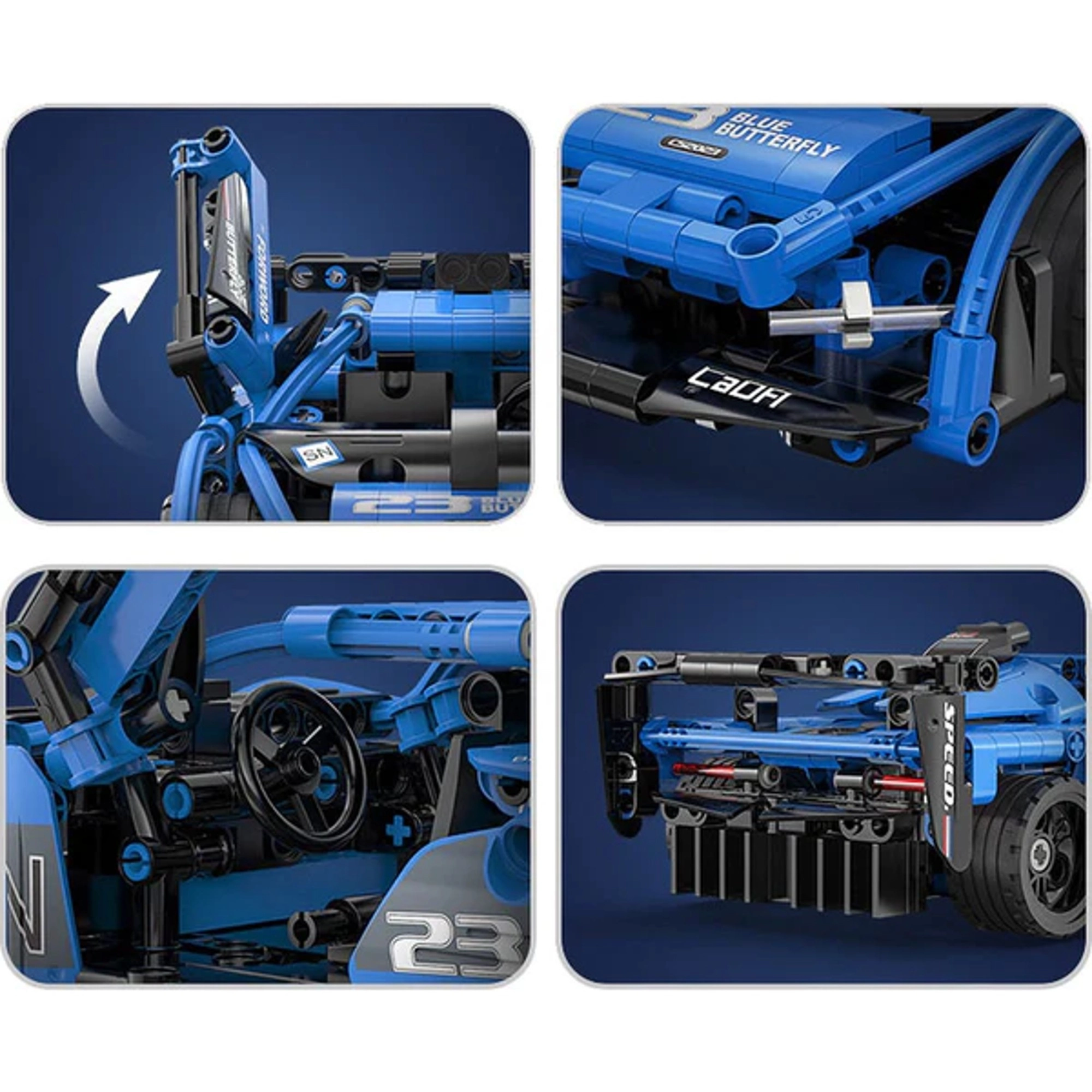 Le modèle, d’un élégant bleu avec des éléments noirs, propose des portes ouvrantes, un aileron réglable et un volant fonctionnel. Les pièces sont compatibles avec d’autres sets CADA, vous pouvez donc agrandir votre collection et créer des constructions encore plus ambitieuses. L’emballage est soigné, idéal comme cadeau pour les enfants dès 6 ans et les constructeurs passionnés.