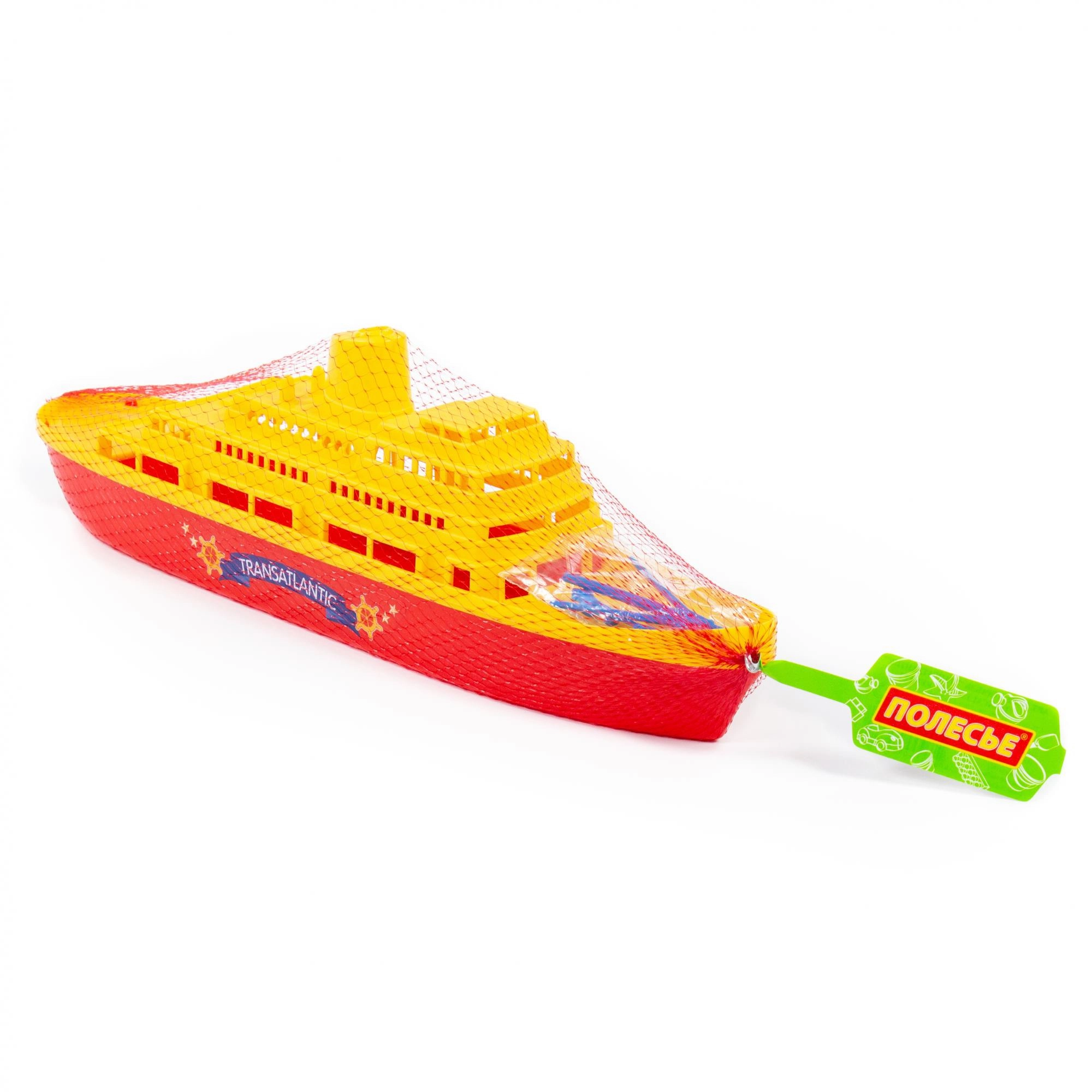 Le Transatlantic Liner est sans propulsion, favorisant ainsi le jeu créatif et développant l’imagination. Les ponts détaillés, les hublots et les mâts inspirent des histoires d’océan et de port – dans la baignoire, la piscine ou au bac à sable.