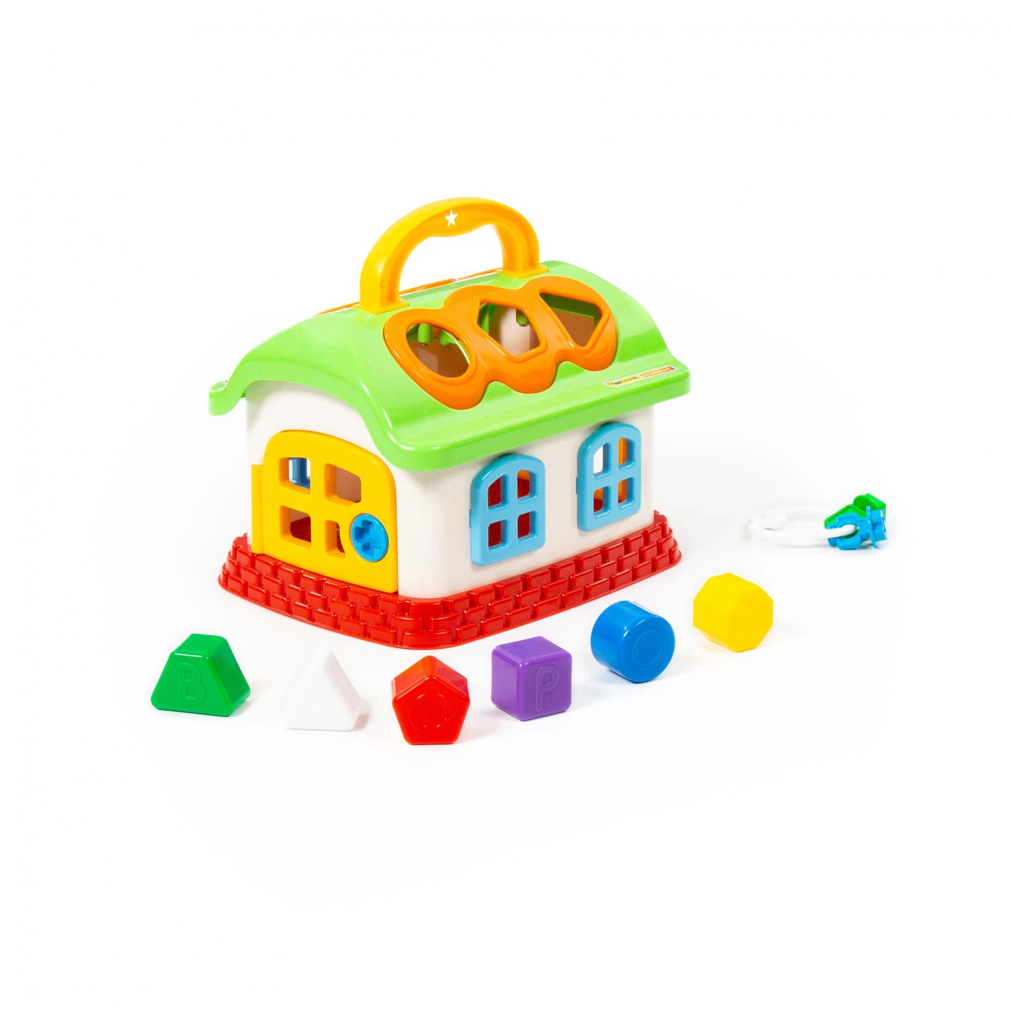 Le toit et les parois comportent des ouvertures pour insérer des blocs géométriques colorés. Les petites portes peuvent être ouvertes, ce qui apporte encore plus de jeu et d’apprentissage. Un outil idéal pour développer la motricité fine, entraîner la patience et distinguer les couleurs.