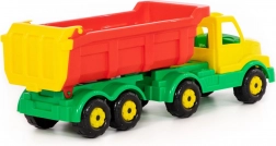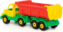 Ce camion benne basculant robuste en plastique avec remorque est idéal pour les petits bâtisseurs. Grâce à la benne basculante et au panneau arrière mobile, les enfants déplacent facilement sable, briques ou autres petits objets. Sa structure légère mais solide convient au jeu intérieur comme extérieur.
