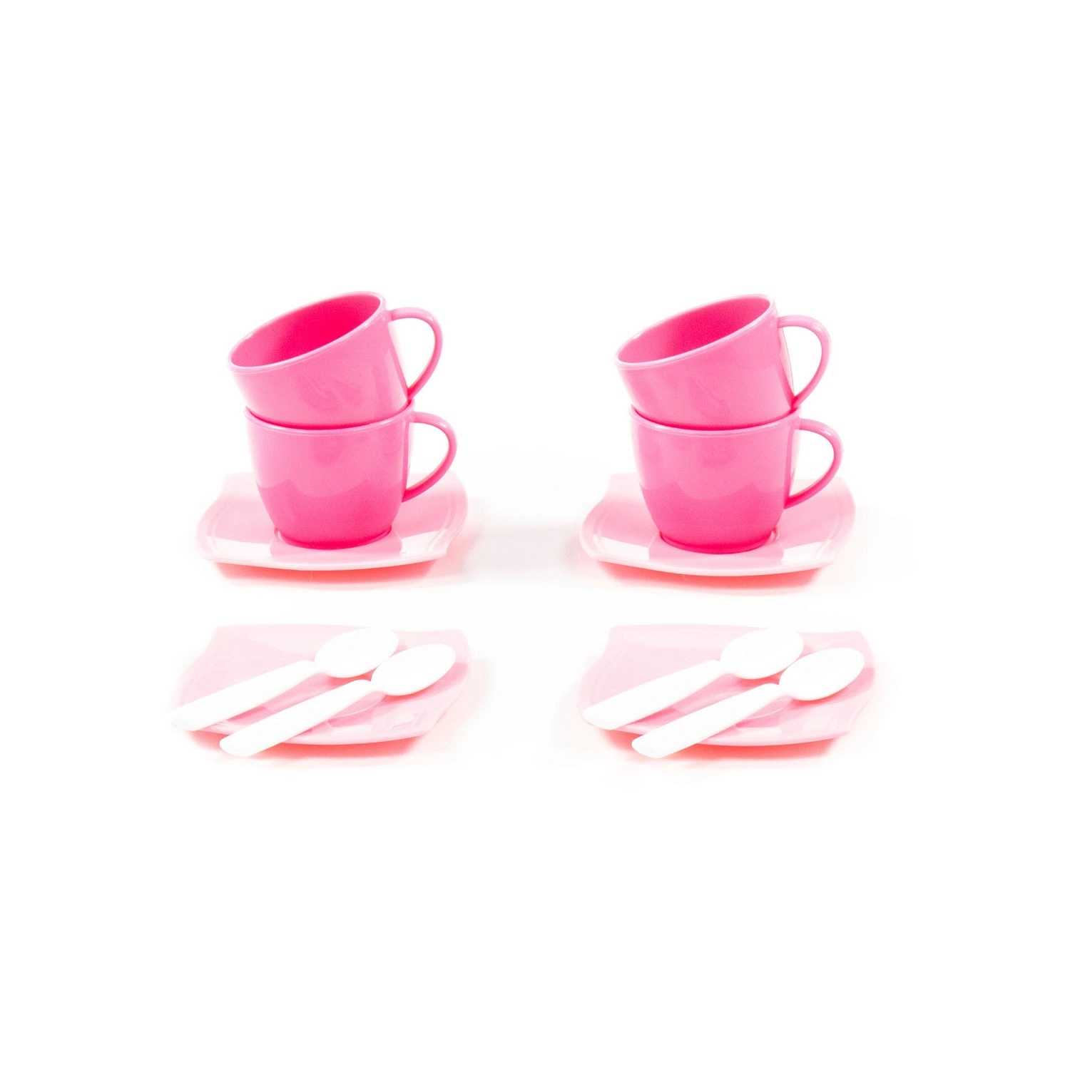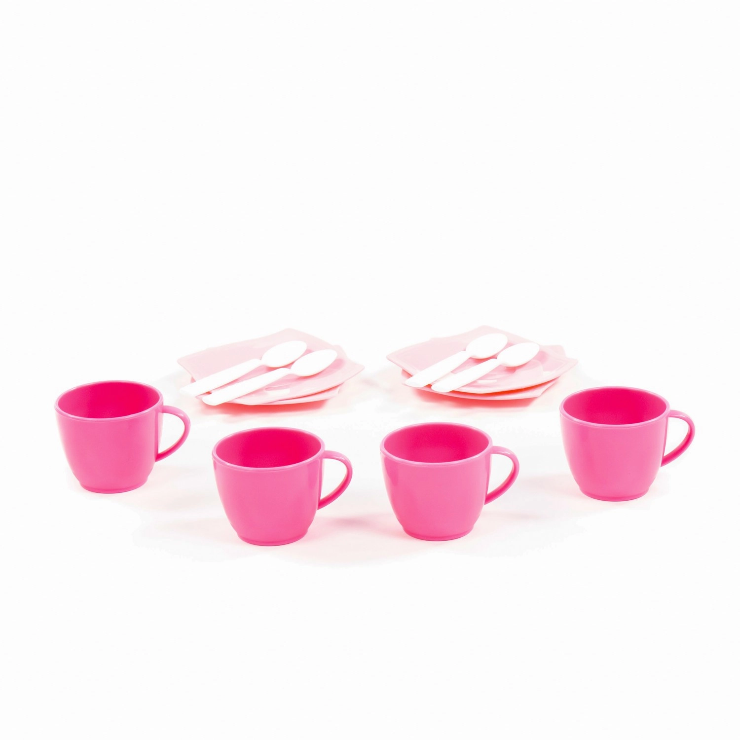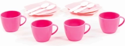 Adorable set de café pour enfants Alica pour 4 personnes, idéal pour jouer aux goûters thé et café. Il comprend 4 tasses avec anse, 4 soucoupes et 4 cuillères en plastique léger – sûr, résistant et facile à nettoyer. Parfait pour développer la motricité fine et les compétences sociales.