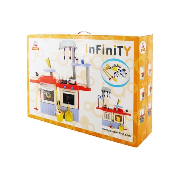 La cuisine Infinity Premium offre aux enfants un environnement domestique complet pour jouer à cuisiner, faire la lessive et repasser. Le set se compose de deux parties : un module cuisine et un module avec machine à laver, évier et planche à repasser – les deux parties peuvent être utilisées ensemble ou séparément. Grâce à une riche panoplie d’accessoires, le jeu est immédiatement prêt et réaliste.