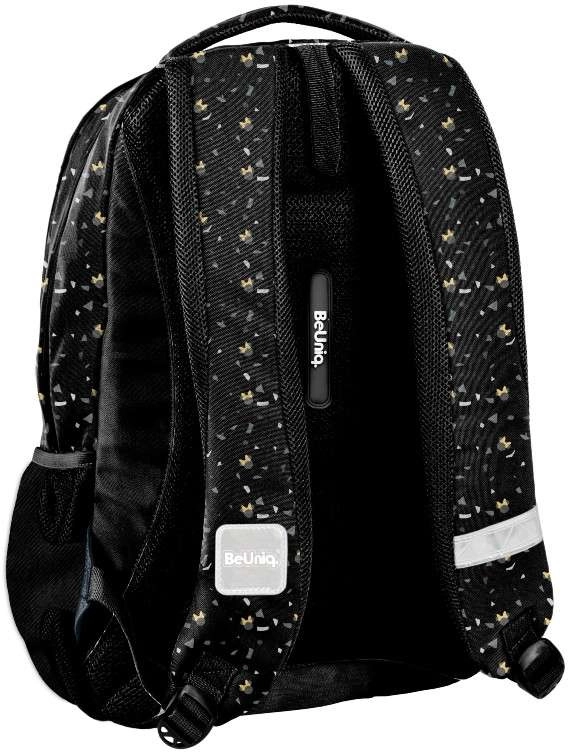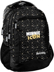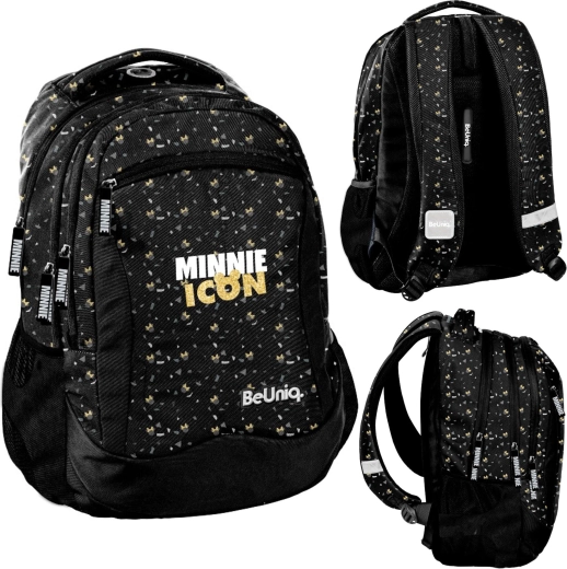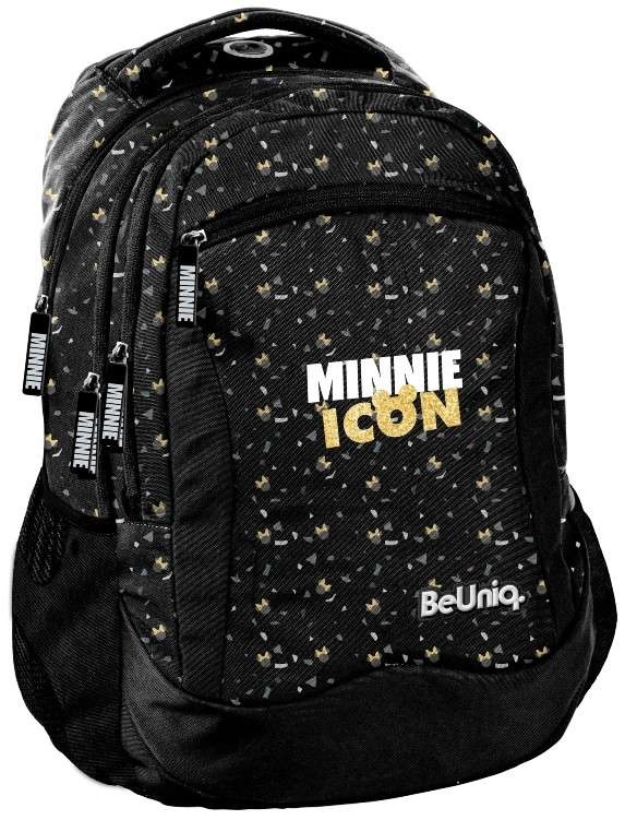 Le sac à dos scolaire BeUniq MINNIE Icon de la marque Paso, léger et résistant, dans un design noir‑or, offre trois compartiments spacieux, une poche avant zippée et deux poches latérales en mesh. Il possède des bretelles rembourrées et ergonomiques, un dos renforcé et profilé avec un tissu mesh respirant et des éléments réfléchissants pour plus de sécurité. Grâce à son polyester imperméable de qualité et à son faible poids, il est idéal pour l’école comme pour les loisirs au quotidien.