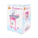 Cette élégante machine à laver pour enfants CARMEN 2 offre aux petits un jeu de rôle domestique amusant et réaliste. La porte avant s’ouvre et se ferme avec un signal sonore, après sélection d’un programme le tambour se met à tourner et des sons de fonctionnement retentissent. L’ensemble stimule l’imagination, la motricité fine et le développement des compétences quotidiennes.