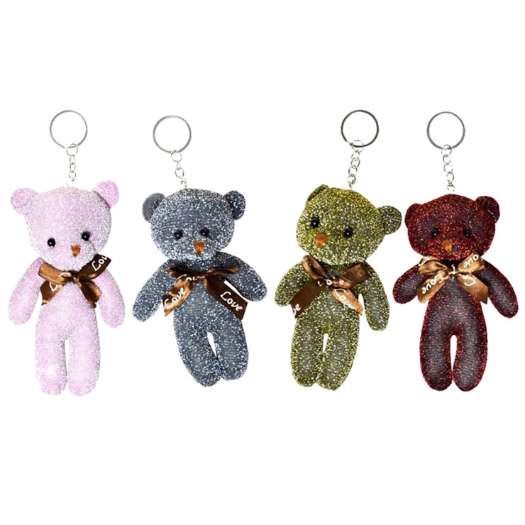 Adorable ourson scintillant de 11 cm, idéal comme cadeau original pour une amie ou petite attention. Disponible en quatre couleurs – rose, doré, gris et rouge – il brille joliment et embellit toute pièce, étagère ou bureau.