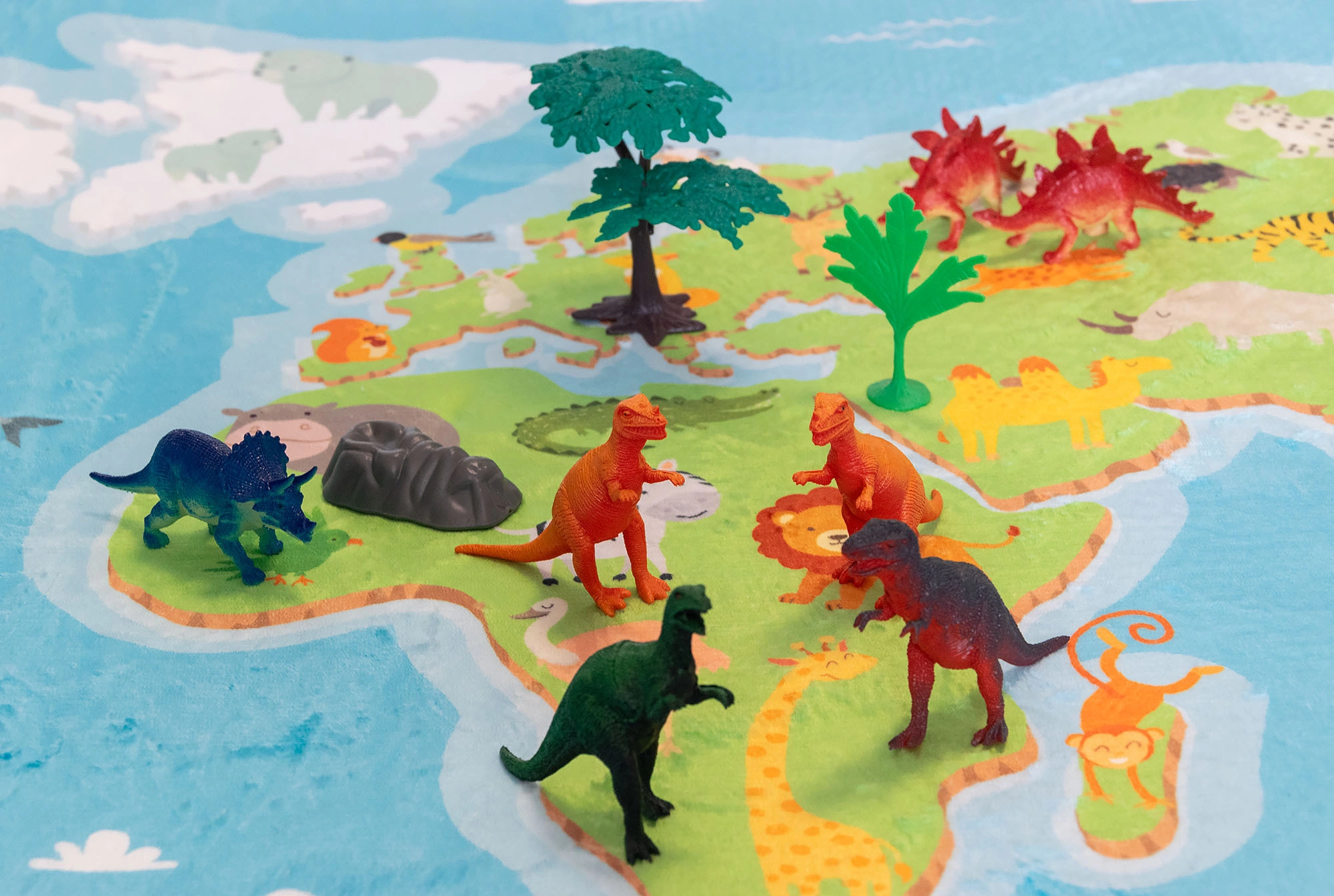Une sélection variée de dinosaures, d’arbres et de rochers permet aux enfants de créer leurs propres scènes préhistoriques et de développer imagination et persévérance dans le jeu.