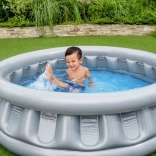 La piscine gonflable en forme de navette spatiale apporte aux enfants beaucoup de divertissement estival et un rafraîchissement confortable. Grâce à son fond gonflable souple et à ses parois agréables servant d’accoudoirs, le séjour dans l’eau est confortable même pour les plus petits. La piscine se gonfle et se vide facilement, ce qui rend son rangement et son transport très simples.