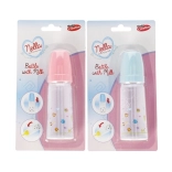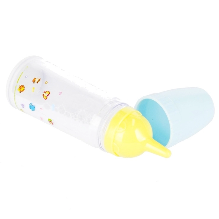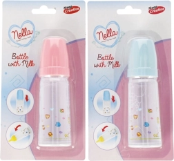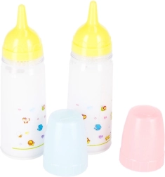 Amusant biberon pour poupée avec effet de lait coulant, stimule l’imagination des enfants et l’apprentissage des soins au bébé. En l’inclinant, le « lait » se rassemble dans le capuchon et simule la succion ; en le retournant, il remplit à nouveau les parois comme une bouteille pleine. Disponible en deux couleurs – bleu et rose, avec bouchon vissé et plastique résistant.