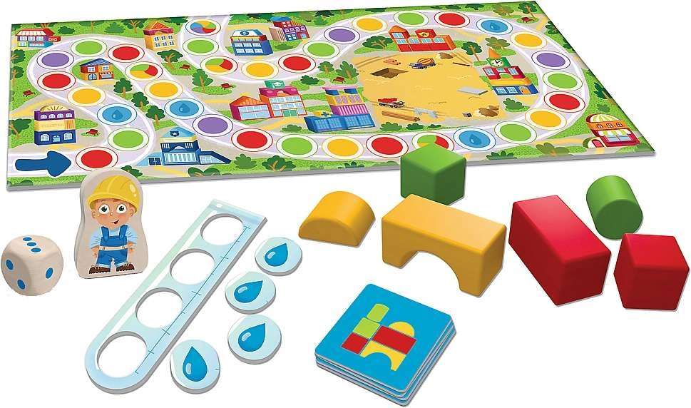 La tâche des joueurs est de trouver les éléments adéquats et de terminer les projets de construction plus vite que n’arrive la pluie. Le jeu propose des parties courtes et palpitantes, favorisant à la fois la coopération et une saine compétition. Son emballage coloré en fait un excellent cadeau pour les petits bâtisseurs.