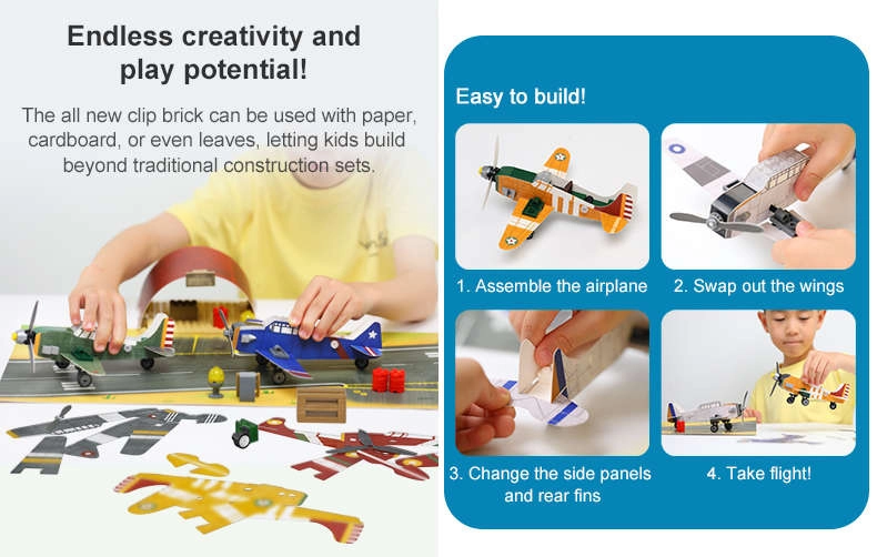 - Briques à clips pour une connexion facile avec le papier et le textile