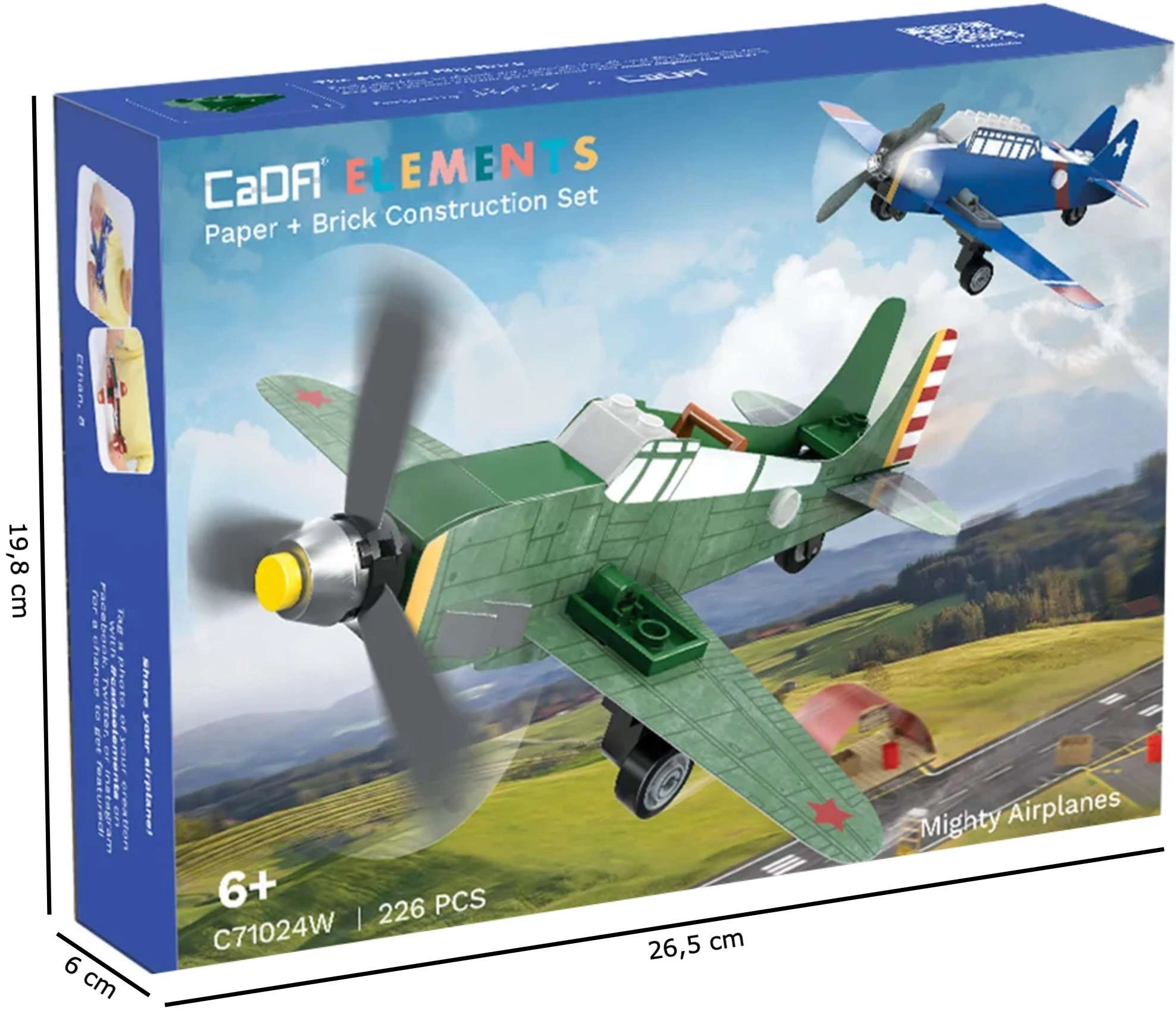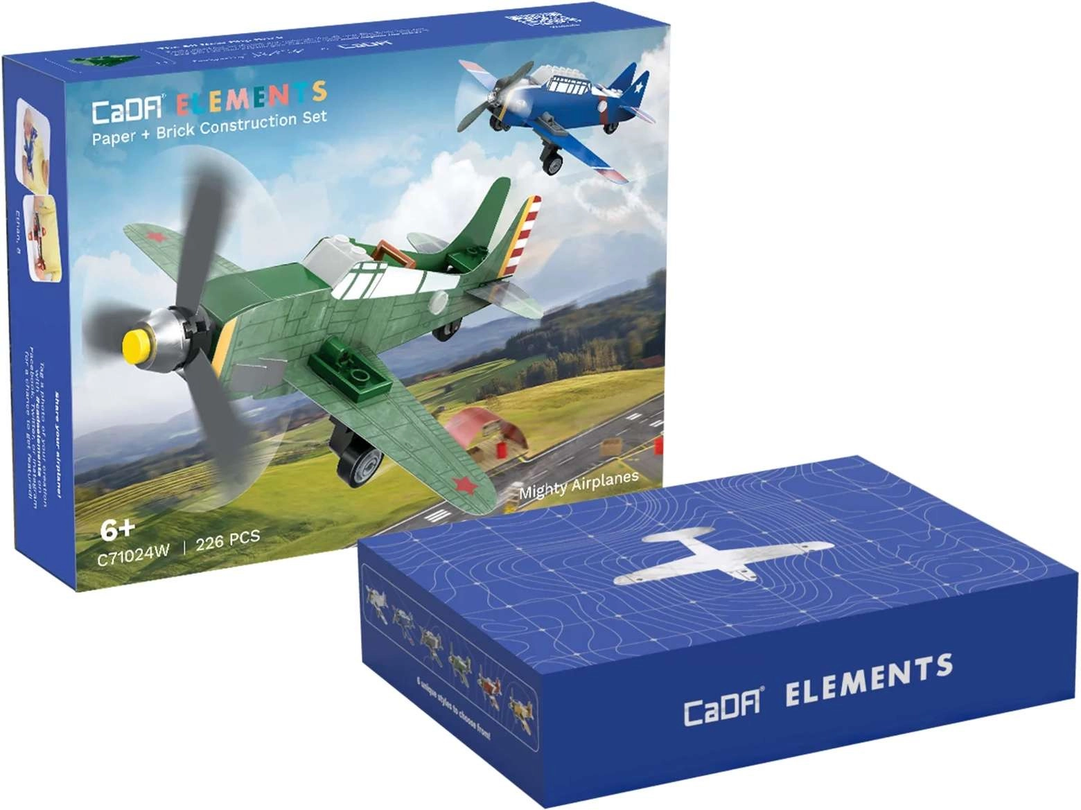 Découvrez le kit créatif CADA Elements, grâce auquel les enfants peuvent assembler jusqu’à 6 avions différents en papier et en briques, y compris une piste d’atterrissage. L’ensemble comprend 226 pièces, dont des briques à clips pour se fixer au papier ou au textile, des panneaux décoratifs et d’autres accessoires. L’emballage élégant sert d’expositor et fait partie du jeu – un cadeau idéal pour les petits constructeurs dès 6 ans.