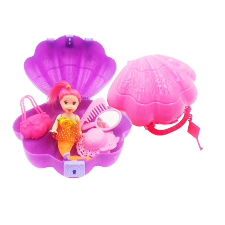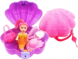 Adorable set avec poupée – une sirène dans une valisette en plastique en forme de coquillage, idéal pour les voyages. Il contient tout le nécessaire pour un jeu créatif : sirène, chapeau, miroir, peigne, sac à main et clé. Disponible en trois couleurs – rose, violet ou bleu. Ne convient pas aux enfants de moins de 3 ans.