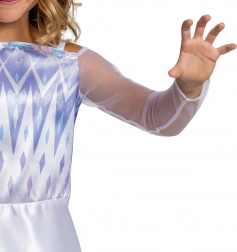 Émerveillez une petite princesse avec une magnifique robe inspirée du personnage ELSA du film DISNEY LA REINE DES NEIGES. Matière légère, confortable et brillante, manches transparentes et motifs glacés pour un look féerique lors de chaque carnaval, bal masqué ou séance de jeu de princesse à la maison.
