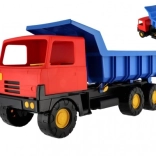 Un camion-benne robuste en plastique avec cabine bleue et une benne rouge basculante ravira les petits bâtisseurs à la maison comme au bac à sable. Grâce à sa longueur de 75 cm, à ses roues résistantes et à sa benne fonctionnelle, il peut transporter sable, cailloux et jouets. Sa construction légère et sûre favorise le jeu créatif en plein air.
