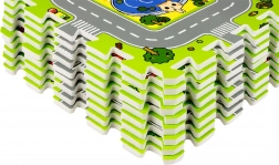 Le matériau EVA est sans phtalates, formamide, BPA et PVC, conforme à la norme EN 71 et aux exigences REACH. Les bords type puzzle permettent de grandir la surface en ajoutant d’autres sets et aussi de créer des formes en volume (p. ex. un cube), ce qui favorise la créativité et la motricité.