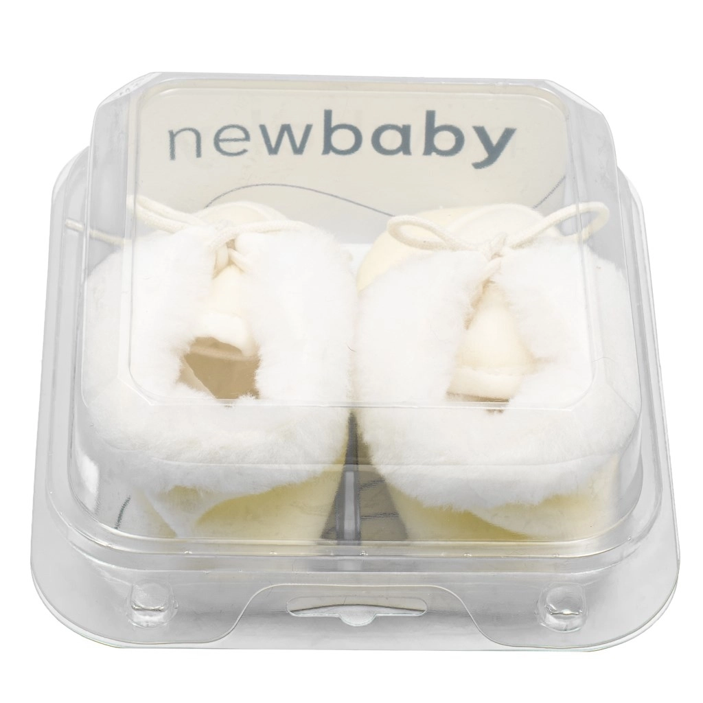 De doux chaussons d’hiver NEW BABY de couleur beige gardent les petits pieds de bébé au chaud et à l’aise. Ils ont une doublure polaire chaude, un laçage pour un serrage sécurisé et une semelle extérieure légère et souple adaptée pour se détendre et être porté dans la poussette. Idéals pour la période 0–3 mois et livrés dans une boîte cadeau pratique.