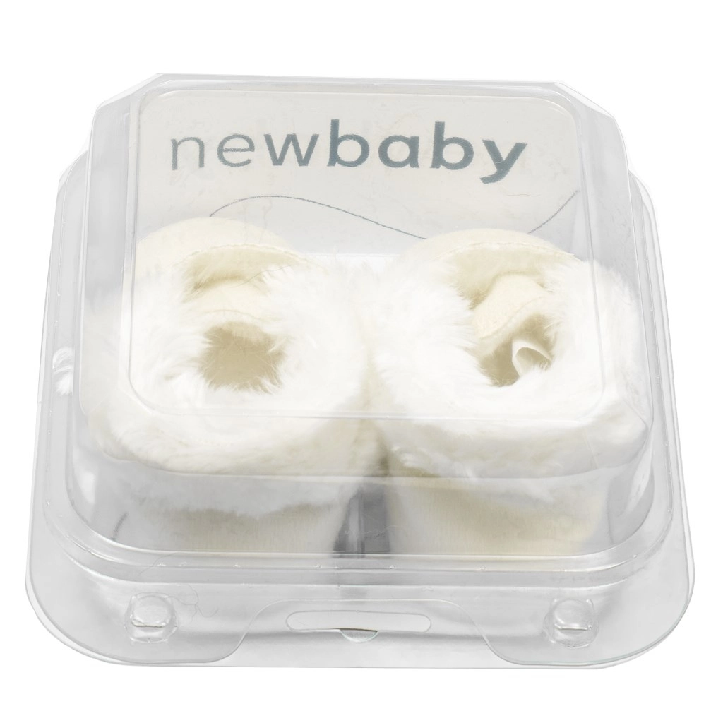 Adorables chaussons d’hiver NEW BABY pour bébés de 0 à 3 mois offrant chaleur, confort moelleux et fermeture facile par velcro. Ils possèdent une doublure polaire chaude, une semelle fine et souple et un espace intérieur large pour la liberté des orteils. Idéals pour la poussette et la maison, non destinés à la marche.