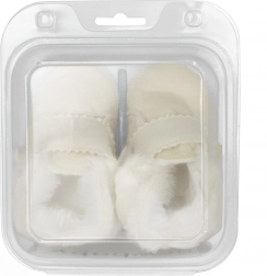 La fermeture à scratch pratique permet un enfilage rapide et un maintien sûr sur le pied. La semelle fine et souple en PVC sans BPA est légère et flexible – parfaite pour le confort en poussette ou à la maison. La longueur de la semelle intérieure est de 11 cm et les chaussons sont livrés dans une boîte pratique, idéale aussi pour un cadeau.