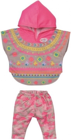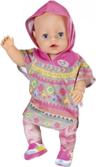 Offrez à votre poupée BABY born une nouvelle tenue pleine de couleurs et de confort. Cet ensemble allie design ludique et praticité : le poncho tout doux avec capuche, le pantalon confortable à motif camouflage et les chaussures assorties créent un look parfaitement harmonieux pour chaque occasion.
