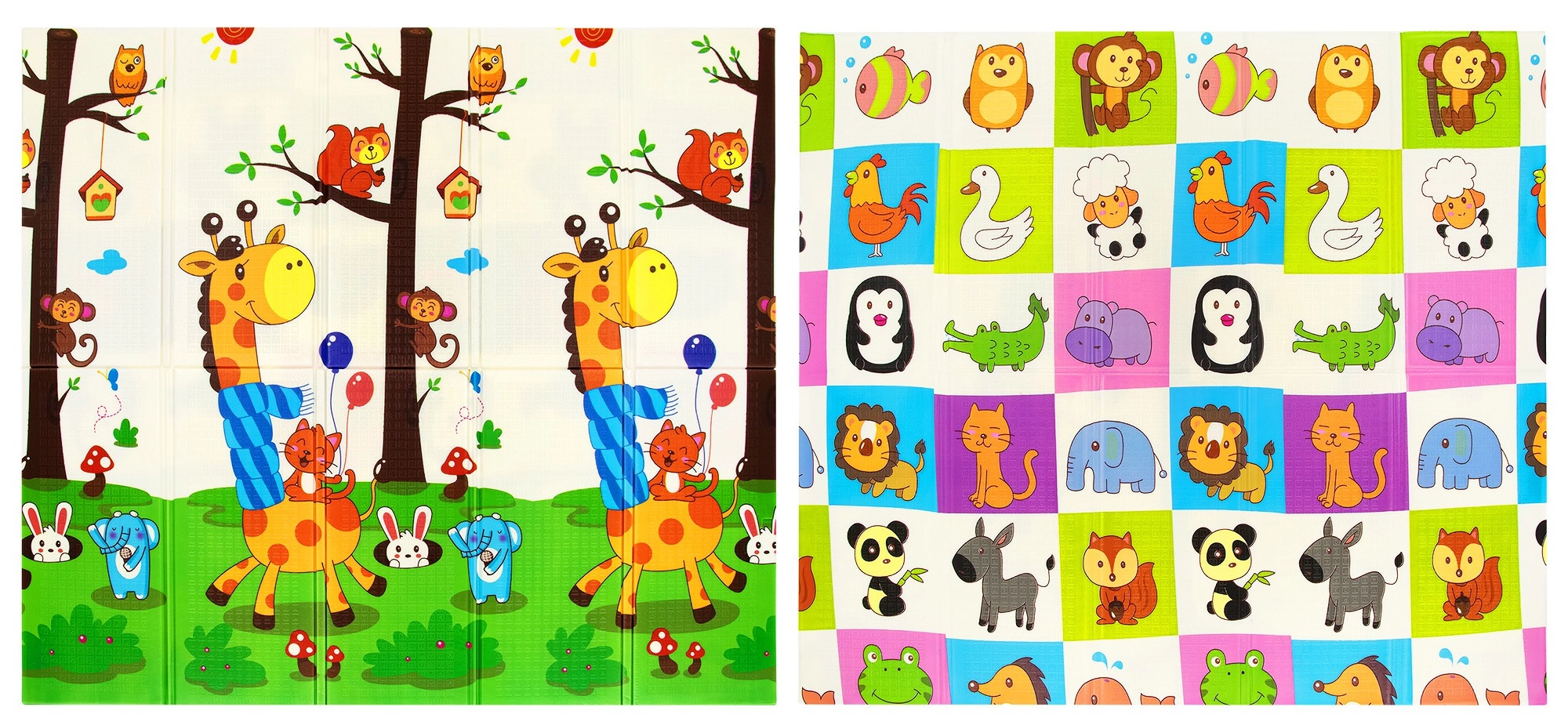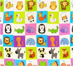 D’un côté, d’adorables girafes, de l’autre, une mosaïque colorée d’animaux. Stimule la perception visuelle et apporte une touche ludique à l’intérieur.