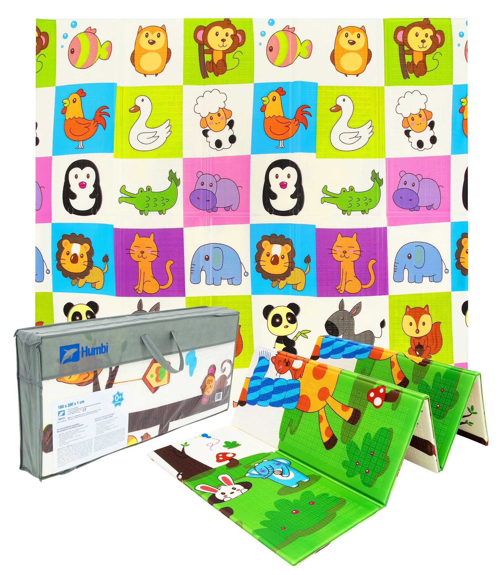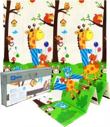 La mousse XPE premium assure au tapis HUMBI une excellente absorption des chocs, une isolation thermique contre le sol froid et une longue durée de vie. Le design réversible avec girafes et grille d’animaux stimule le développement sensoriel et fait du tapis un bel accessoire pour la chambre d’enfant comme pour le salon.
