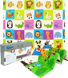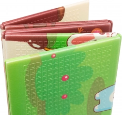 Le tapis est hypoallergénique, inodore et ne contient ni formamide, phtalates, PVC ni BPA. La finition antidérapante avec texture légèrement structurée aide à ramper et marcher en sécurité. Sa construction pliable permet un pliage éclair et un rangement compact sous le lit ou entre les meubles ; le tout complété par un sac de transport zippé.