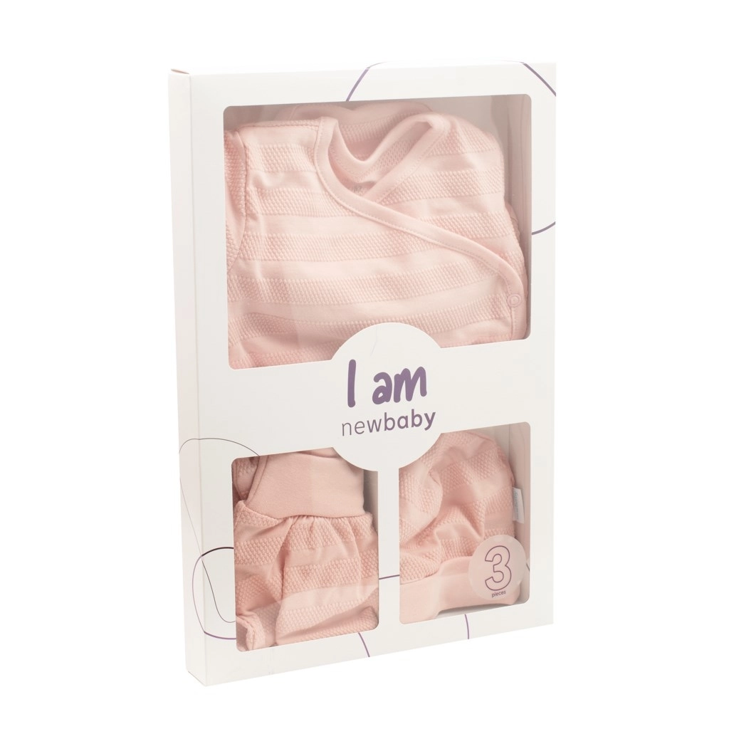 Ce set pour bébé 3 pièces NEW BABY I AM est conçu pour la peau sensible des tout-petits. Coton doux, coupes confortables et détails bien pensés facilitent l’habillage et le change au quotidien. La teinte rose neutre à la texture discrète offre un look délicat et épuré.