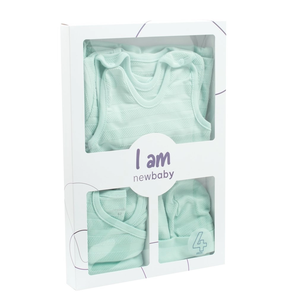 Ce petit ensemble menthe NEW BABY I AM est un choix idéal pour la maternité et les premiers mois de vie. Grâce à ses coupes bien pensées et à la fermeture par boutons-pression, bébé s’habille et se change facilement, sans être dérangé. Le coton agréable assure confort et respirabilité toute la journée, tandis que le motif attrayant apporte une touche unique à la tenue.