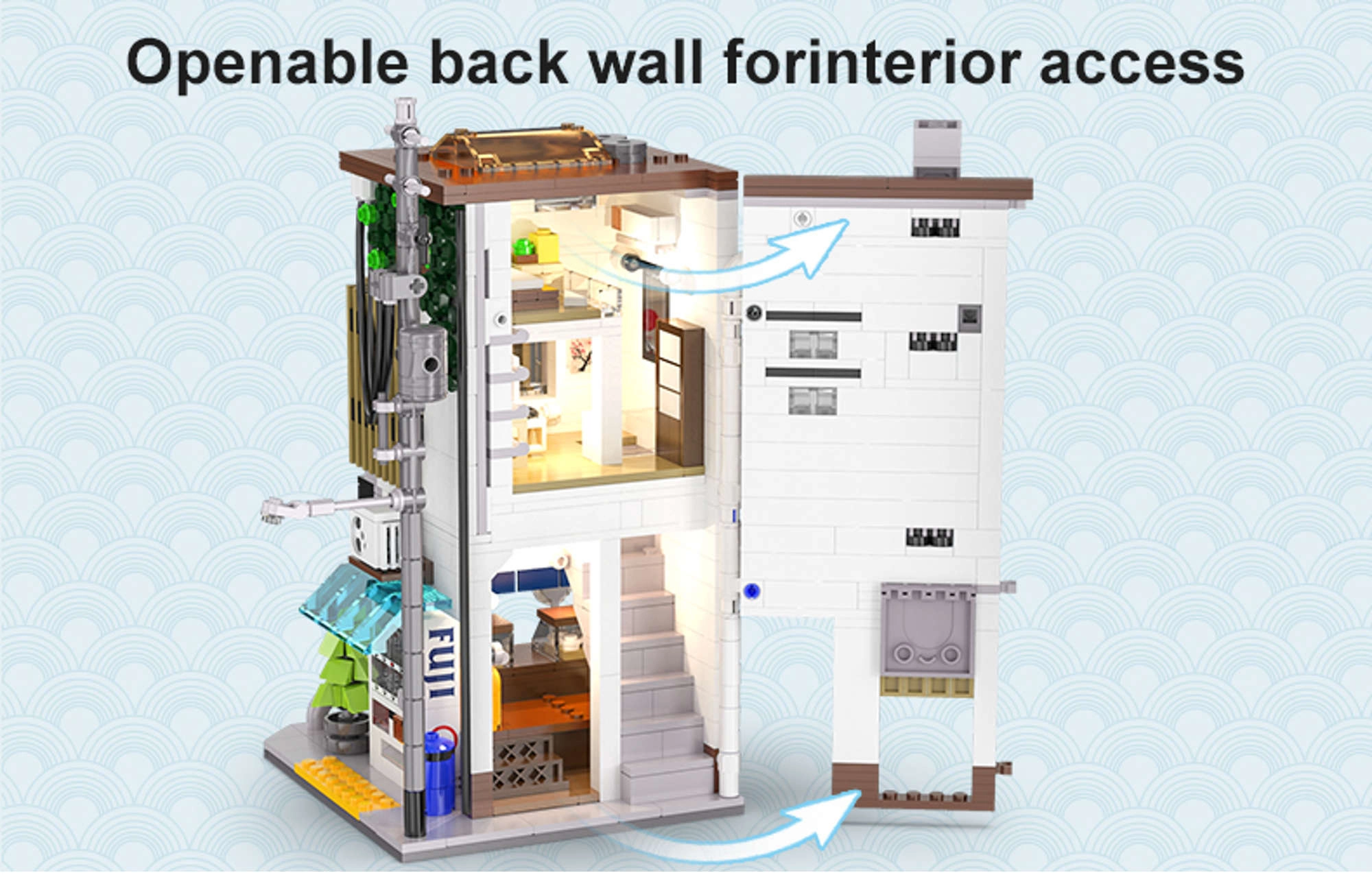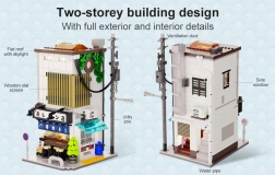 Ce set CaDA élégant restitue l’atmosphère authentique des ruelles japonaises. La boutique de brioches vapeur à deux étages séduit par sa façade réaliste, ses fonctions assurant un accès aisé à l’intérieur et son module LED qui apporte une touche nocturne unique au modèle.