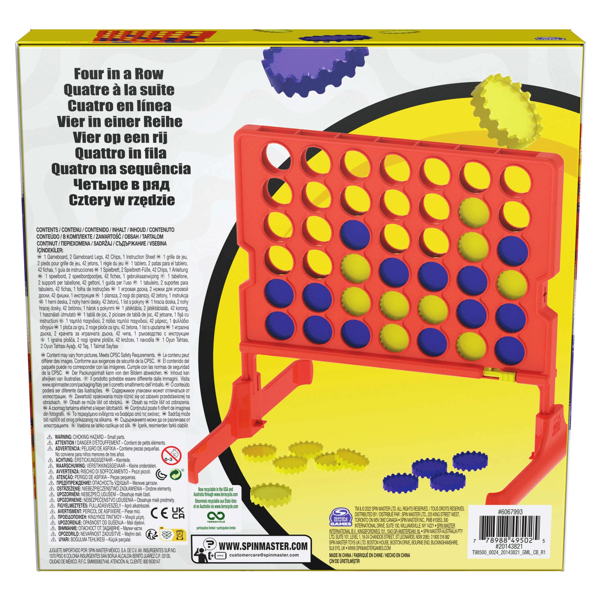 La boîte contient un plateau sur pied rouge, deux supports pour la stabilité, 42 pions jaunes et bleus, ainsi qu’une notice. Grâce à la qualité de fabrication de SPIN MASTER, la durabilité est assurée même en cas d’utilisation fréquente.